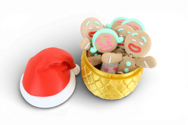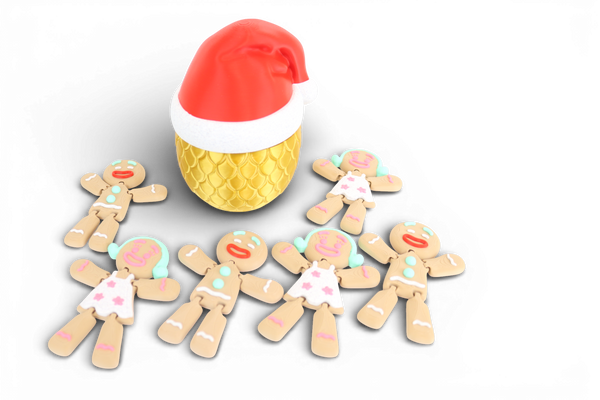 Option 2 -3D Printed egg with Santa Hat and 6 Gingerbread Ornaments